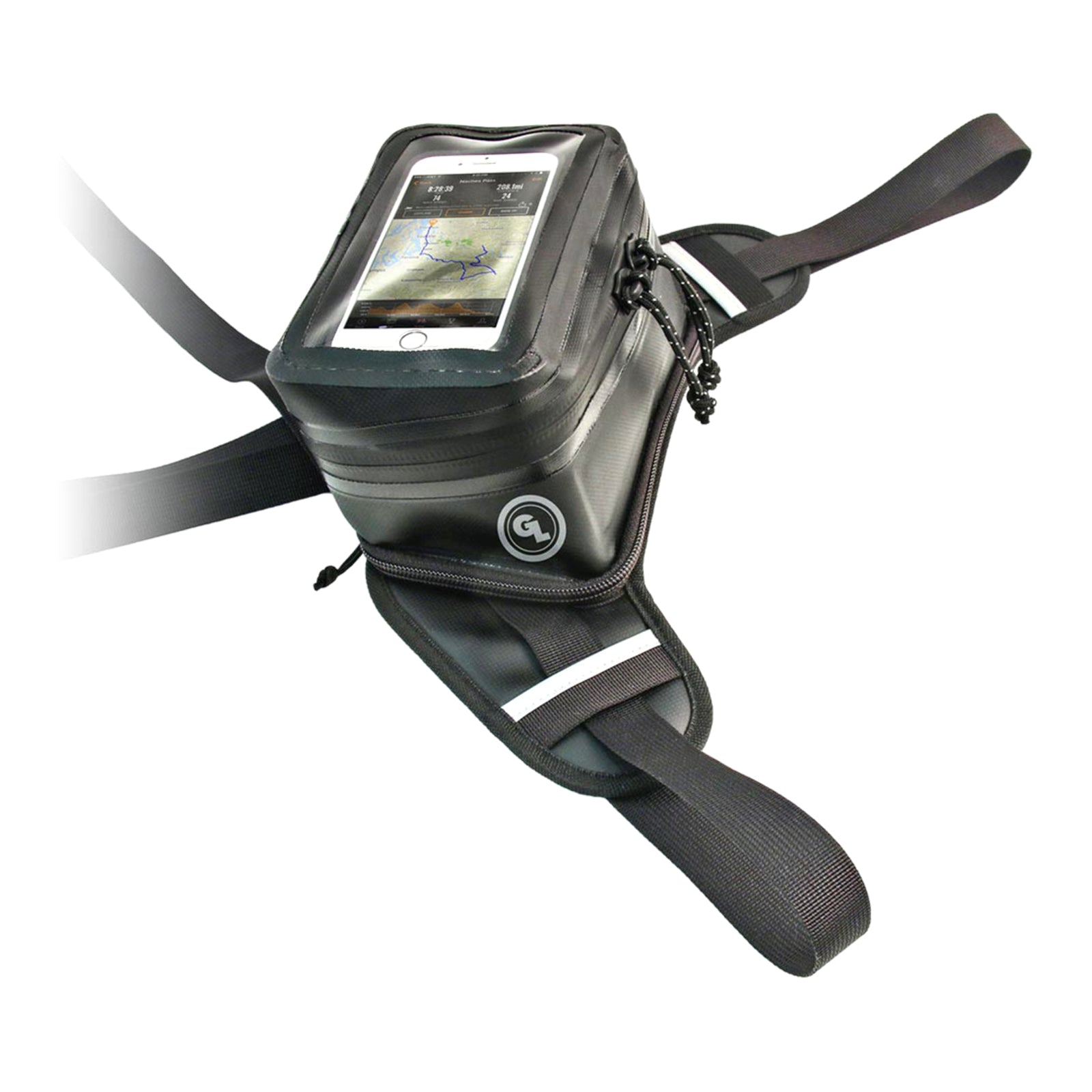 Other key features include rugged Bomb Shell™ coated fabric construction with RF-welded seams, a key clip, internal elastic to keep items organized and secure, a clear vinyl smartphone/map pocket, and an electronics pass-through for on-bike charging and power access (we recommend the BikeMaster USB charger). The clear smartphone/map lid pocket also allows glances at maps or notifications. Combine the Buckin' Roll with Giant Loop Pannier Pockets and Zigzag Handlebar Bag for even more on-the-trail storage volume.