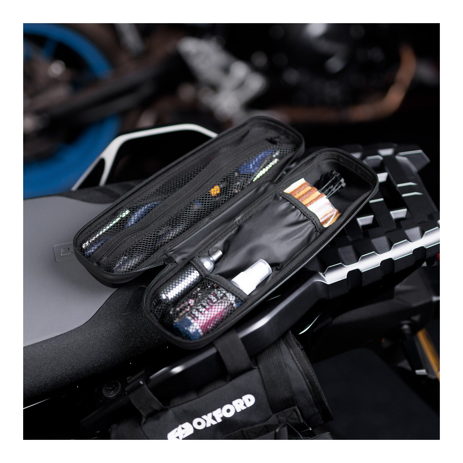 Designed to fit the Oxford Bottle Stash (OX837), the Tool Caddy comprises three internal zipped & webbing pockets and weatherproof construction. The motorcycle tool holder has ample space to carry the essentials, quietly and securely while on the move.