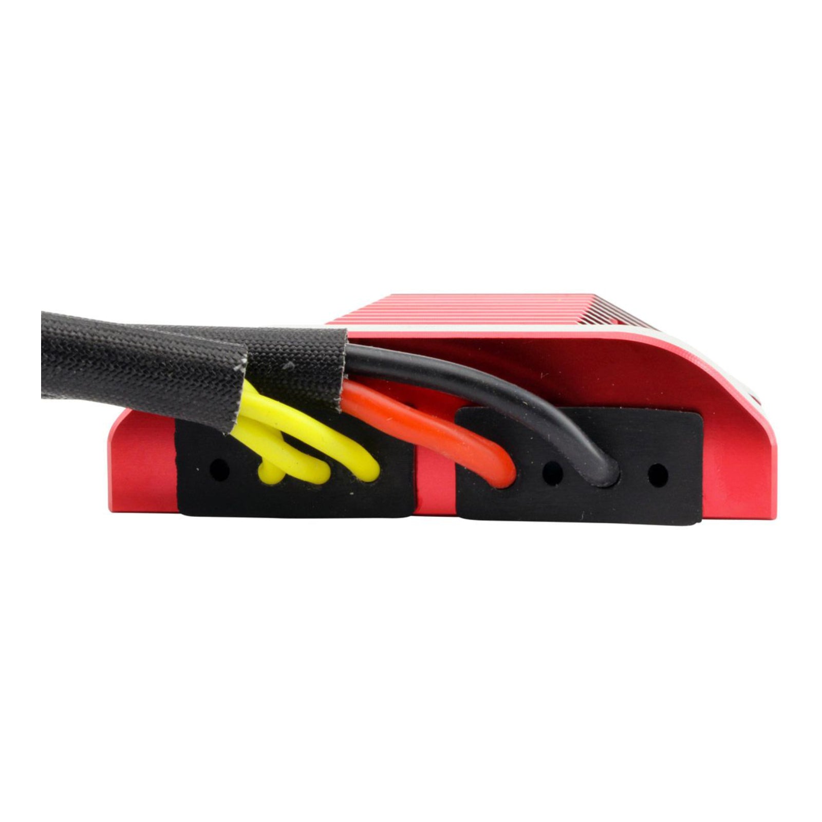 Our new bypass voltage regulator brings back the renowned RMSTATOR Mosfet technology with the RMSTATOR machined aluminium case in a new configuration designed to bypass the main wiring harness and connect the voltage regulator directly to the battery. This configuration has demonstrated a major increase in voltage regulator reliability in real-life scenarios over the years.
