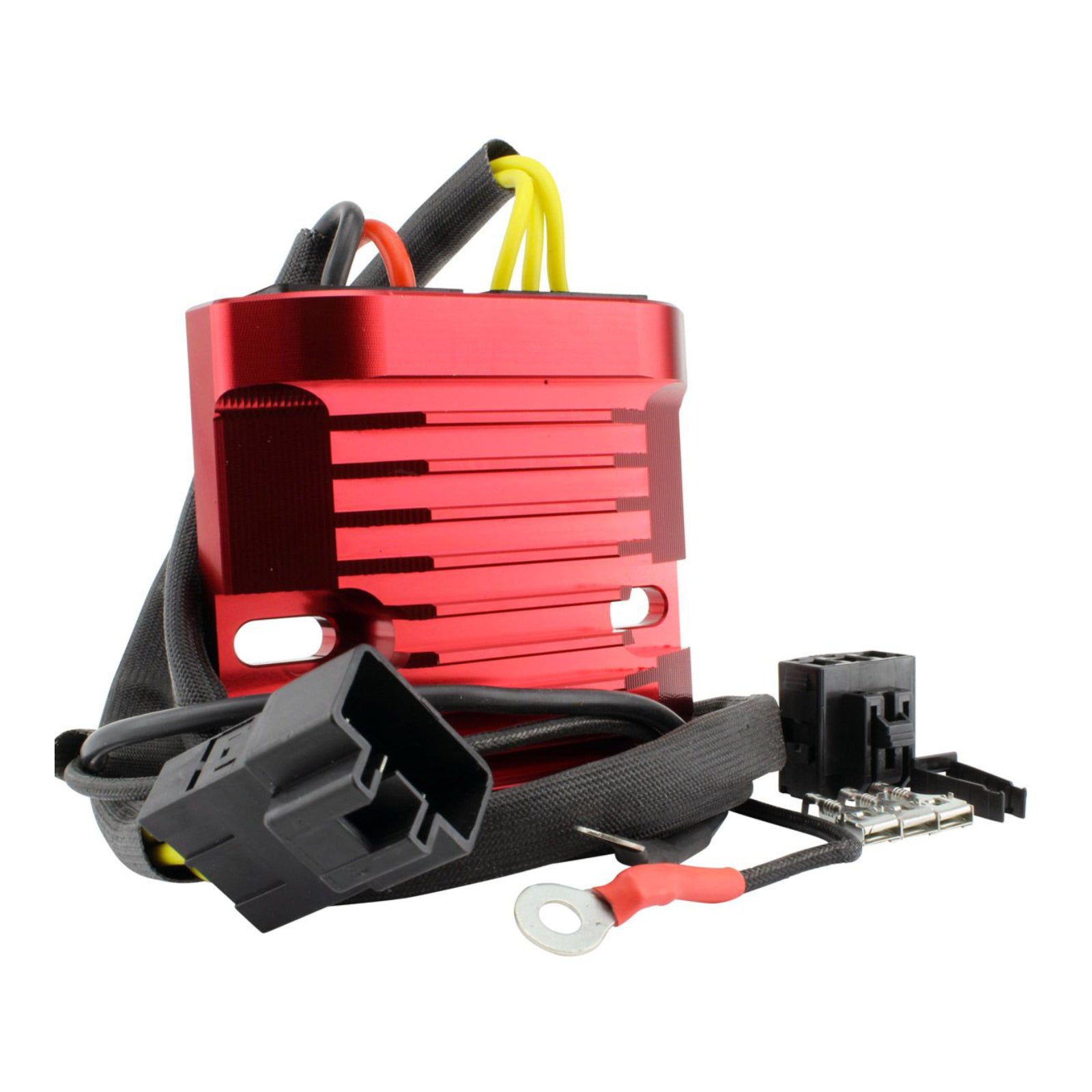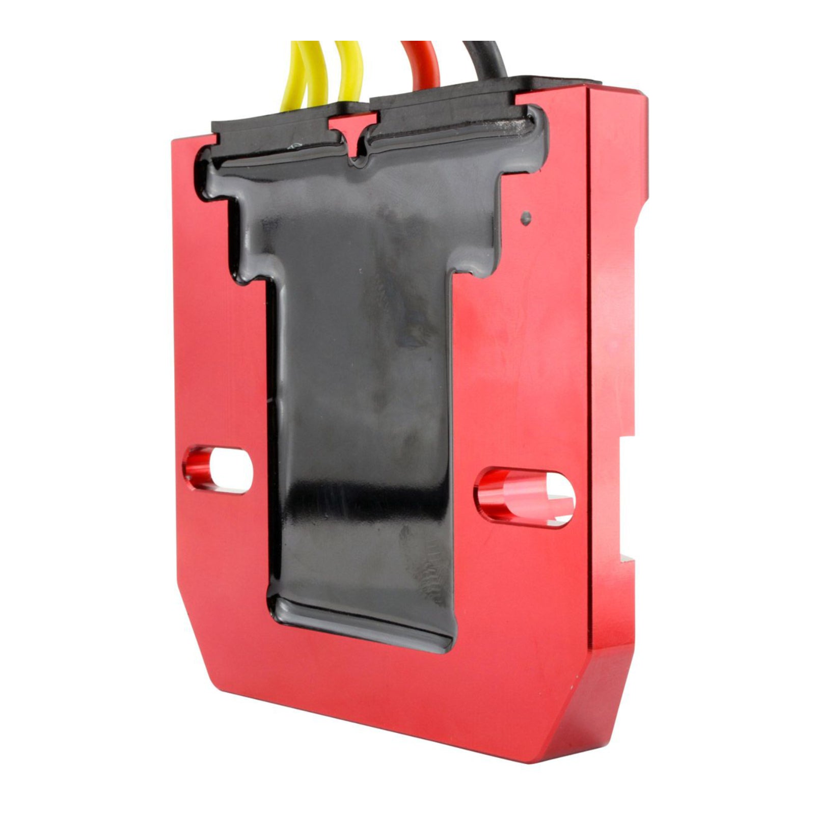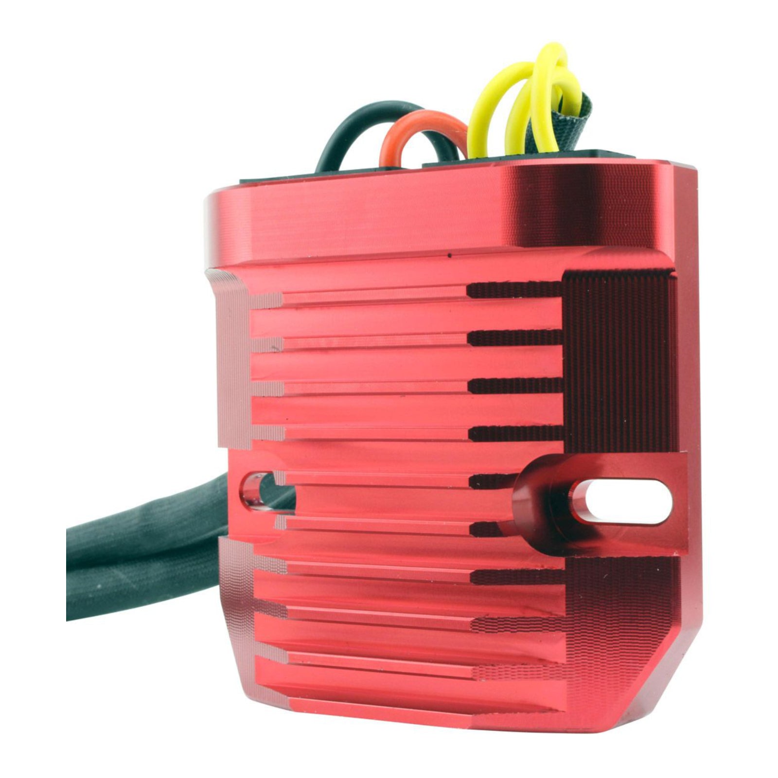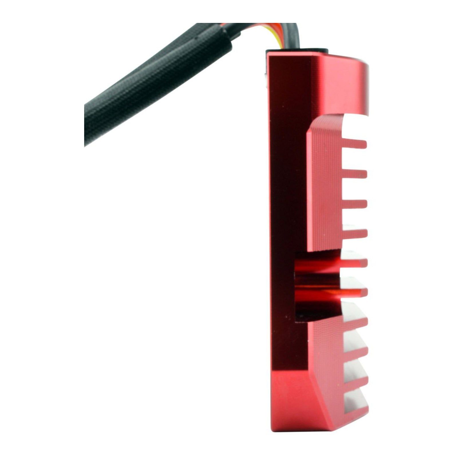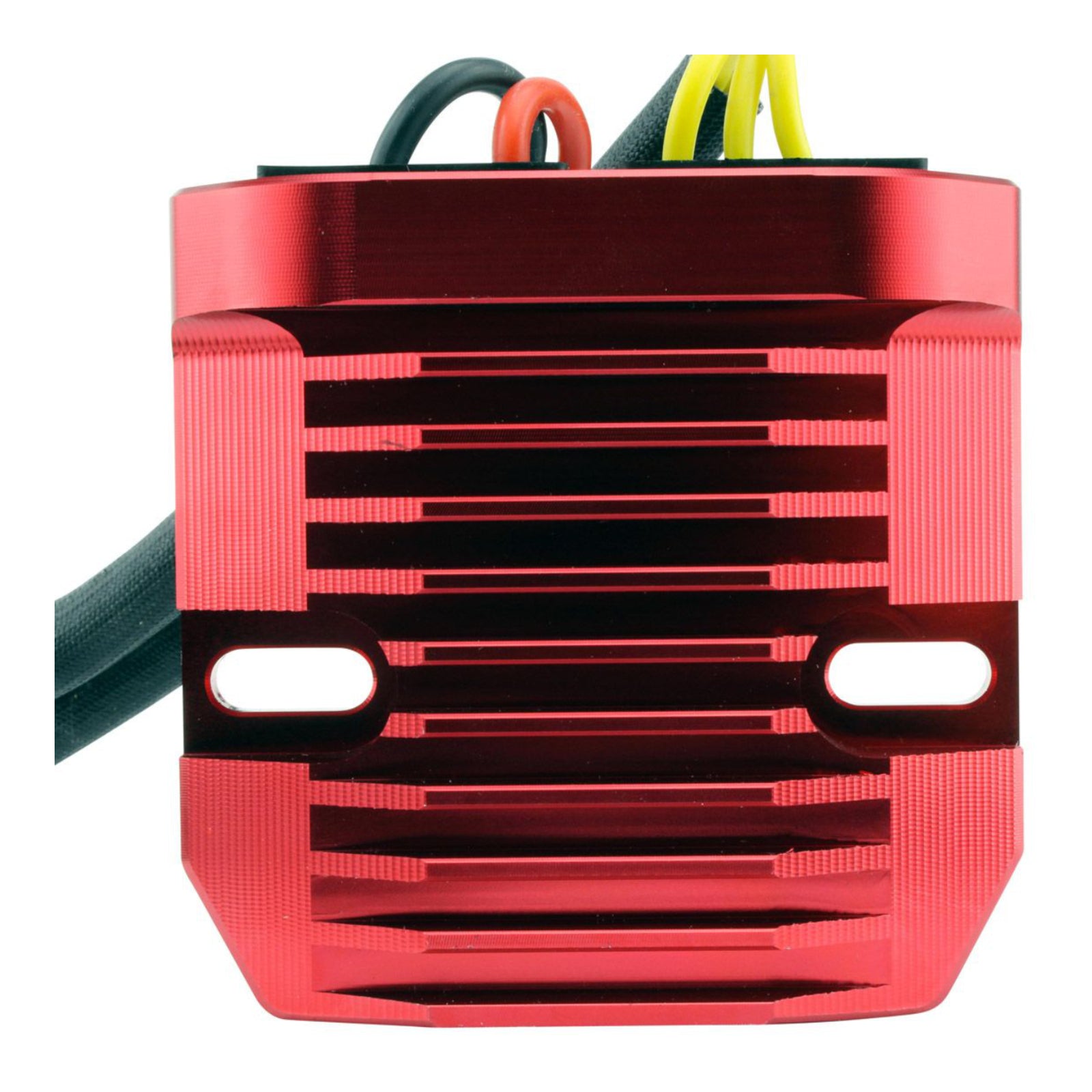 - Billet aluminum housing: Runs 33% cooler than standard cast voltage regulator housings.