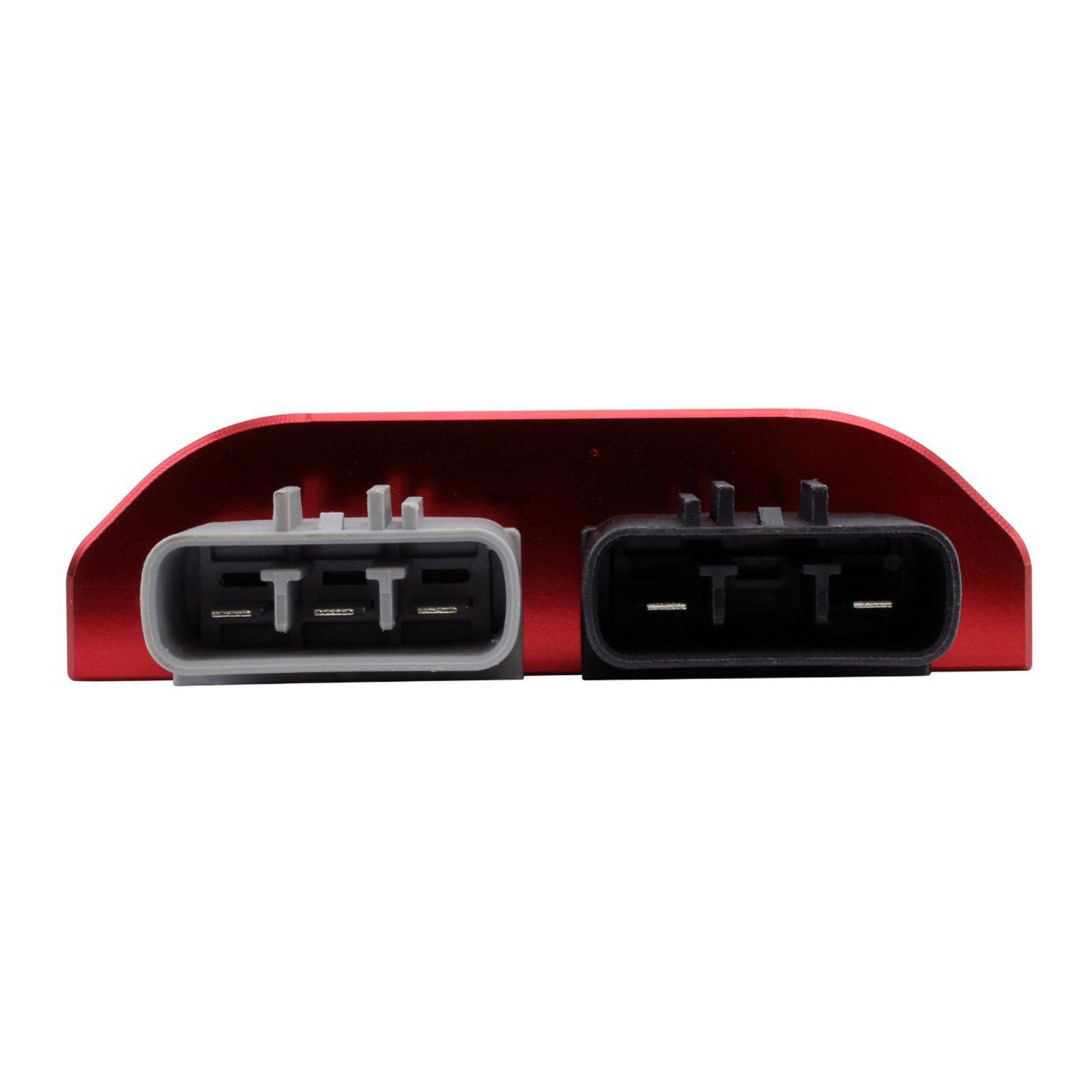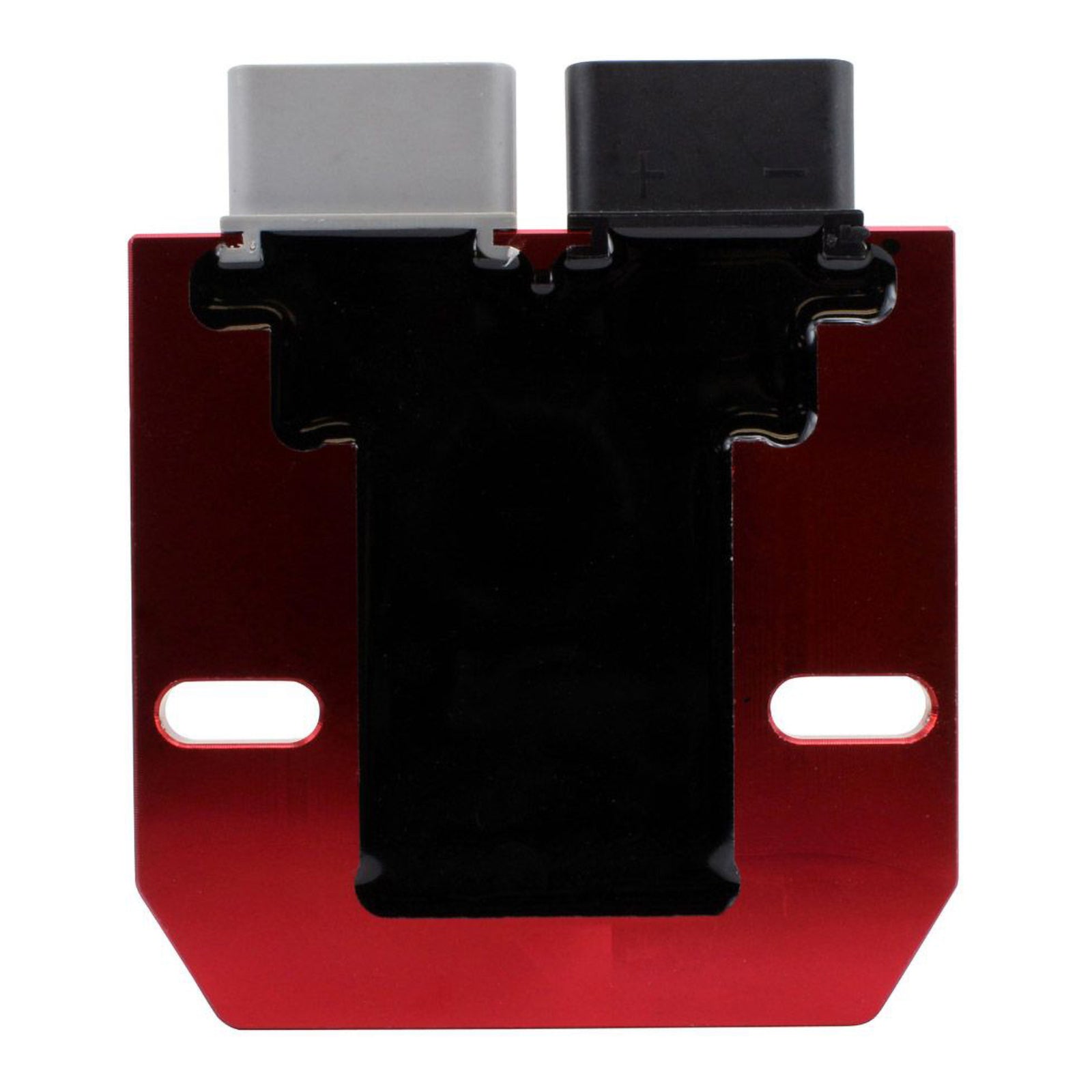 Our new red machined aluminium Mosfet voltage regulator is a great upgrade for heat dissipation in any powersports charging system. After 10 minutes of use, our billet aluminium heatsink runs cooler by 33% than standard cast regulator housings. Our new red regulator, equipped with the renowned Mosfet regulation technology, is an added value to any three-phase permanent magnet charging system.