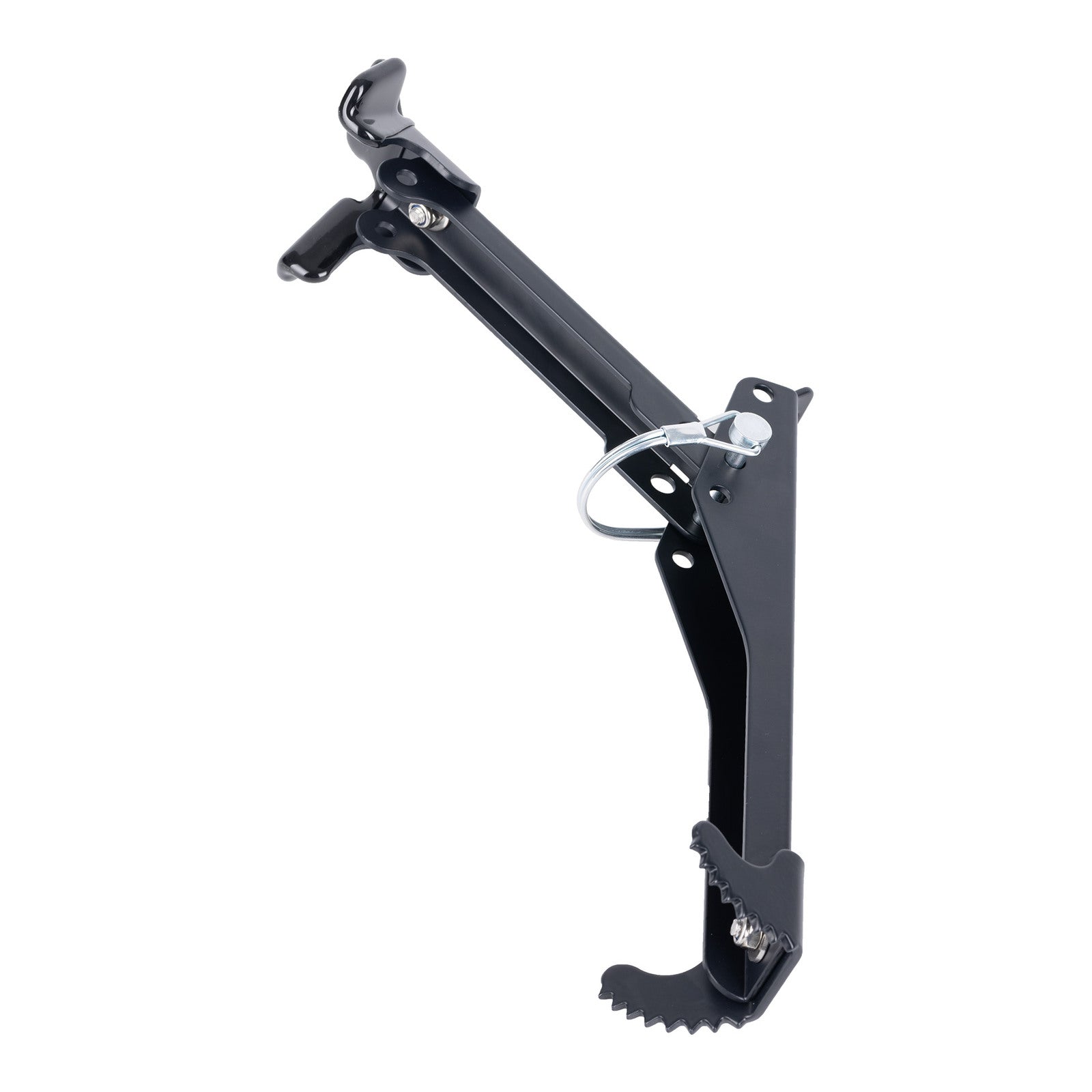 This latest version offers improved stability when loaded and additional user-friendly features. These include an anti-pinch tab to prevent hands getting caught when lifting the bike and a pull loop on the hinge pin to aid removal when lowering the stand.