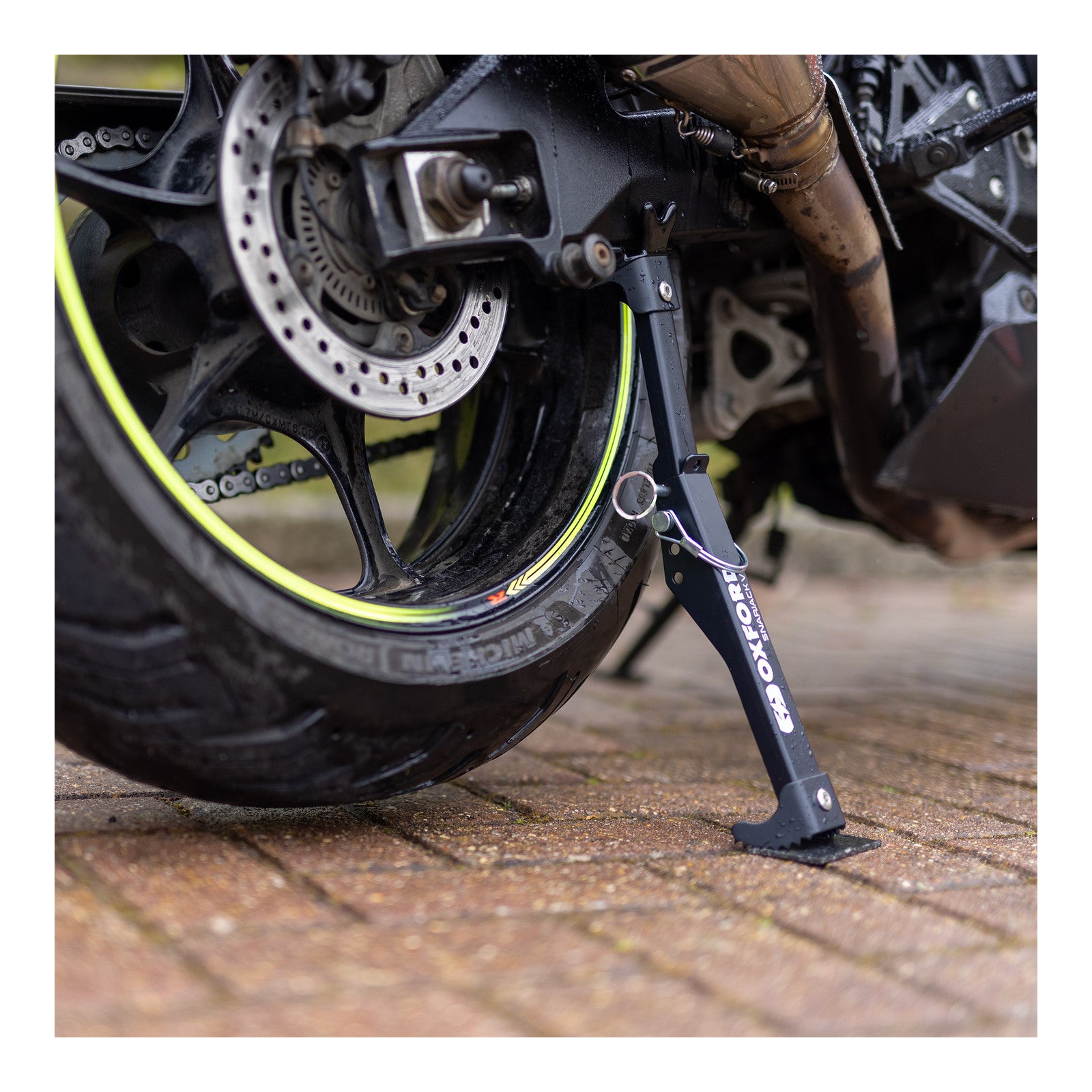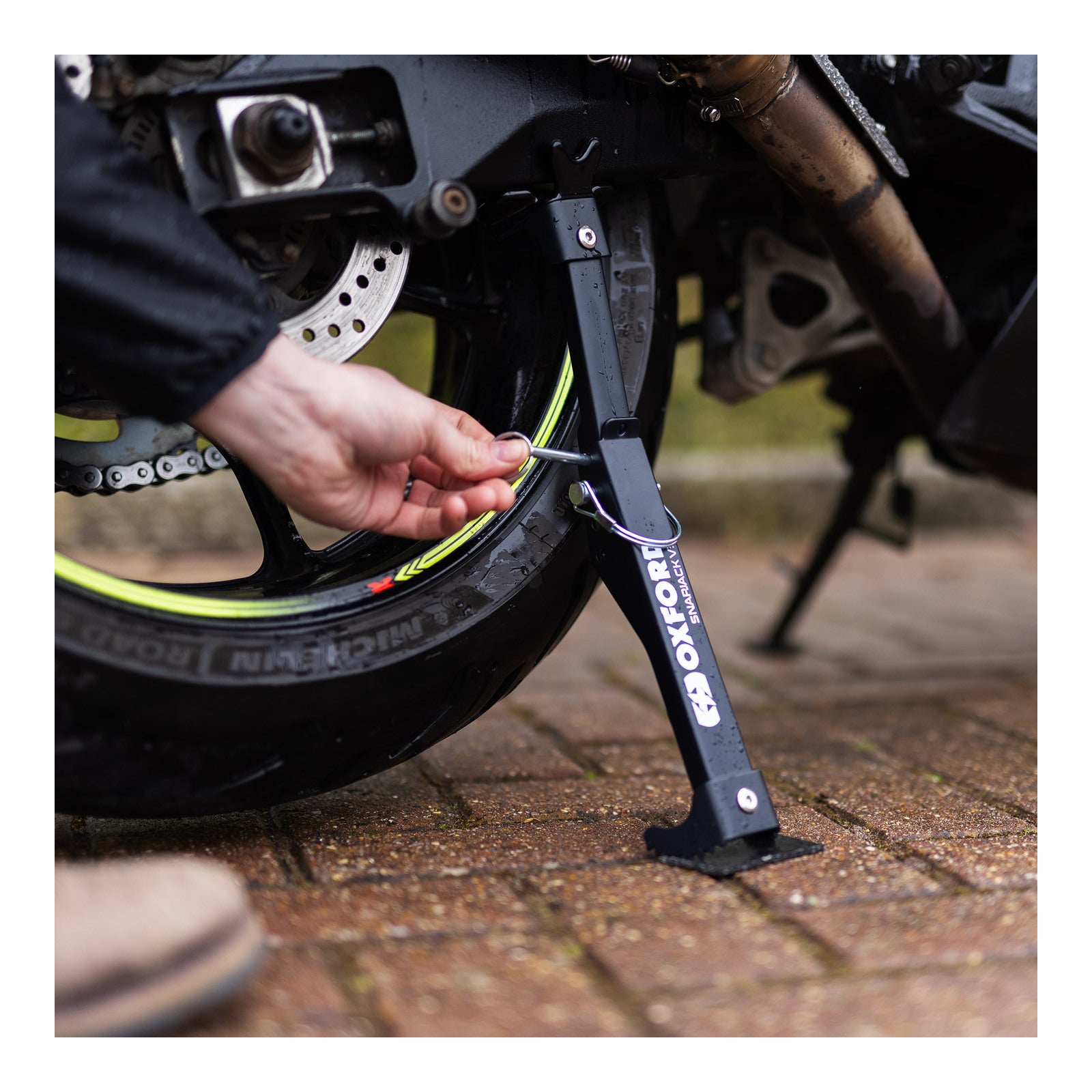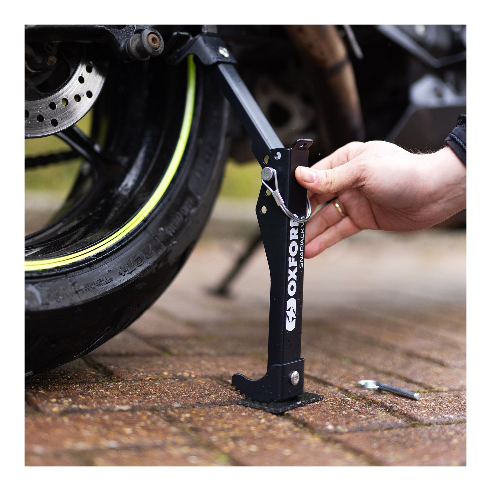 Oxford's Snapjack V3 is a very compact alternative to traditional rear paddock stands, which can be cumbersome to transport and store.