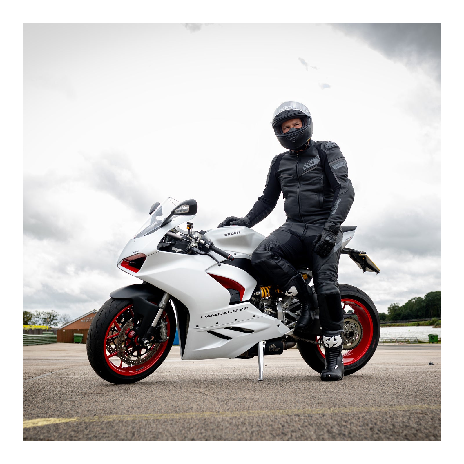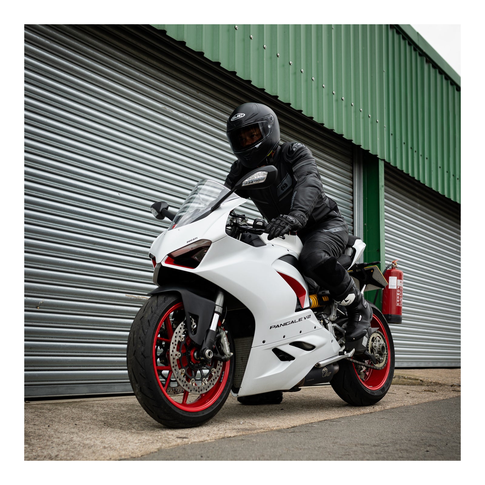 High-performance leather is complemented by CE level 1 protectors at the elbows, shoulders, knees & hips which also feature extended surface area coverage.
